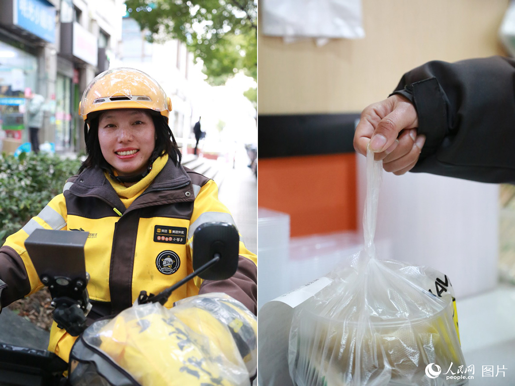 孙精精正在送外卖。人民网记者 龚莎摄