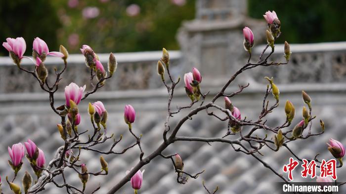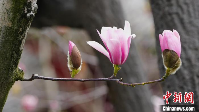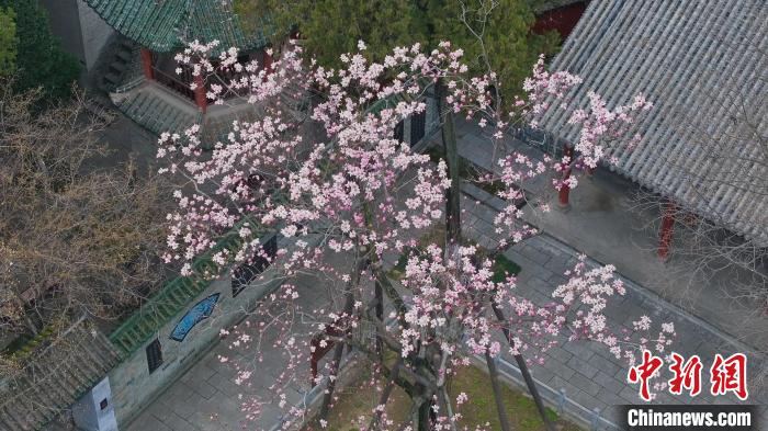 3月7日,陕西省汉中市勉县武侯祠景区内,世界唯一的一株400余岁古旱莲绽放。古旱莲开花时只有花而无叶,初开时呈玫瑰红色,盛开时红白相间。图为陕西汉中勉县武侯祠景区内,世界唯一的一株400余岁古旱莲绽放。徐娇 摄