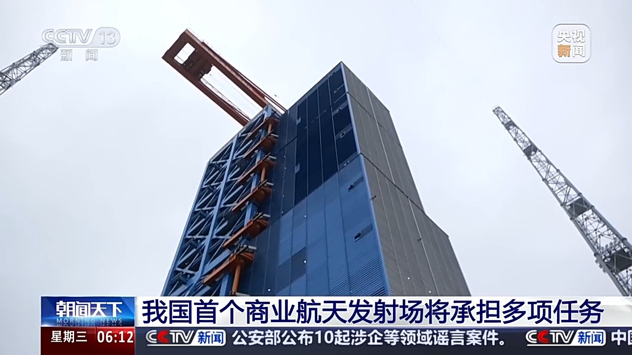总台央视记者 李宁:这里是海南文昌,我现在是在距离地面83米的海南商发的一号发射工位,旁边可以看到它“新三垂”模式的吊车。