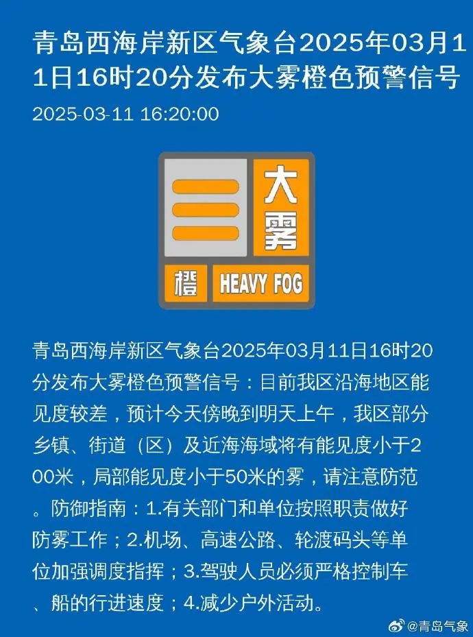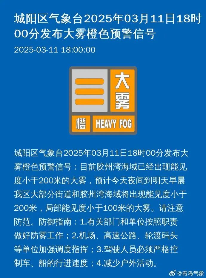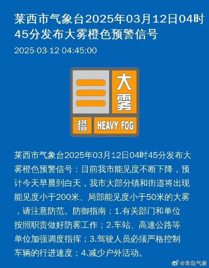 青岛市气象台12日06时发布: