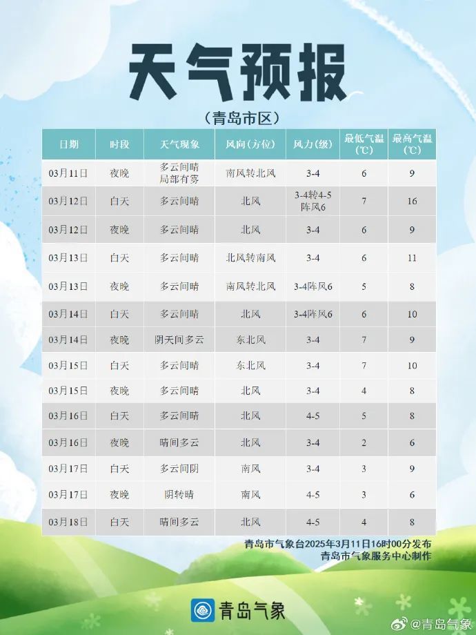 内容来源:青岛气象、山东天气