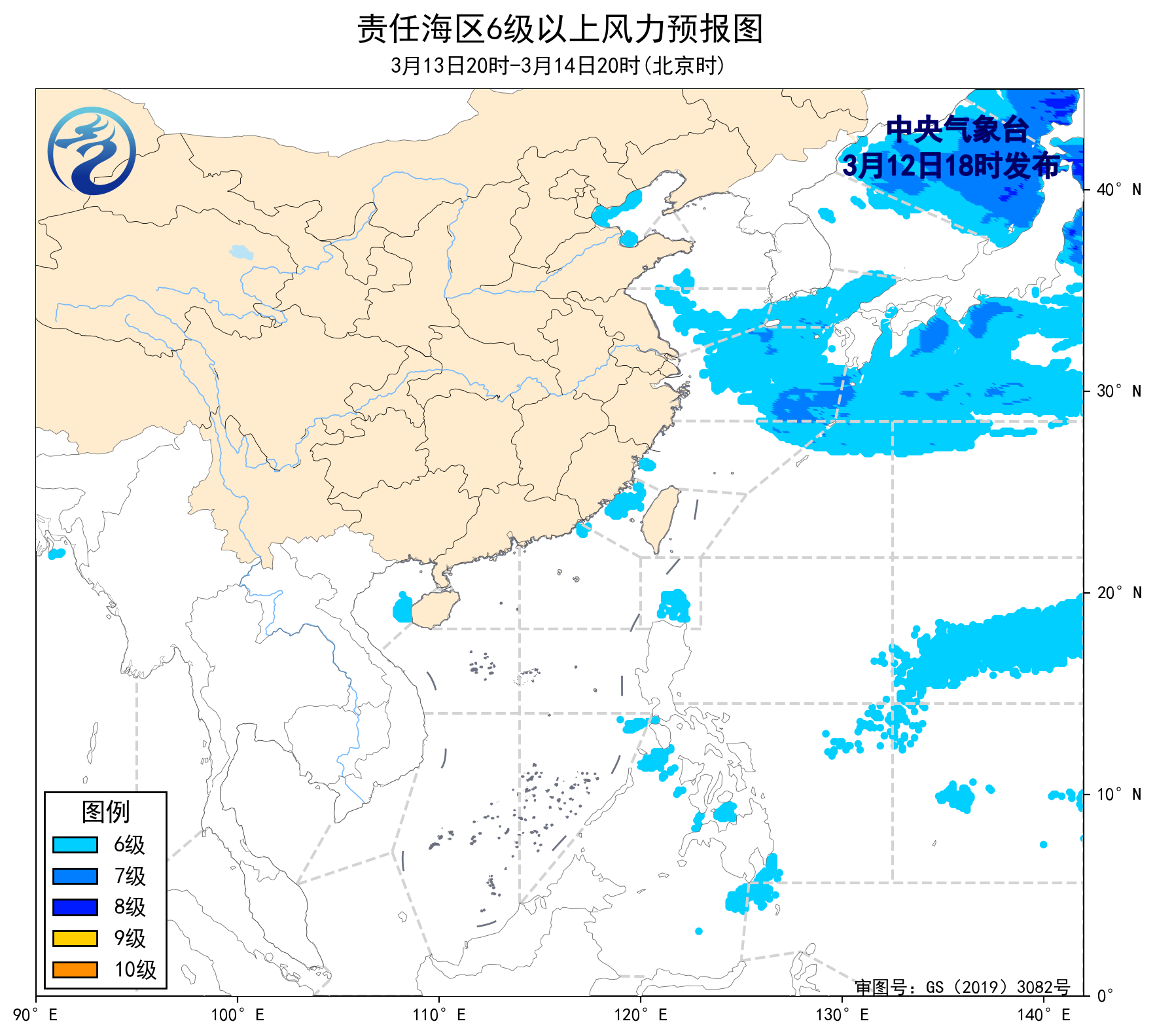 15日20时至19日20时,黄海南部海域,东海大部海域,台湾海峡,台湾以东洋面,巴士海峡,北部湾,琼州海峡,南海东部和西部海域将有9~10级、阵风11级的风。17日20时至19日20时,渤海,渤海海峡,黄海北部和中部海域将有8~9级、阵风10级的风。