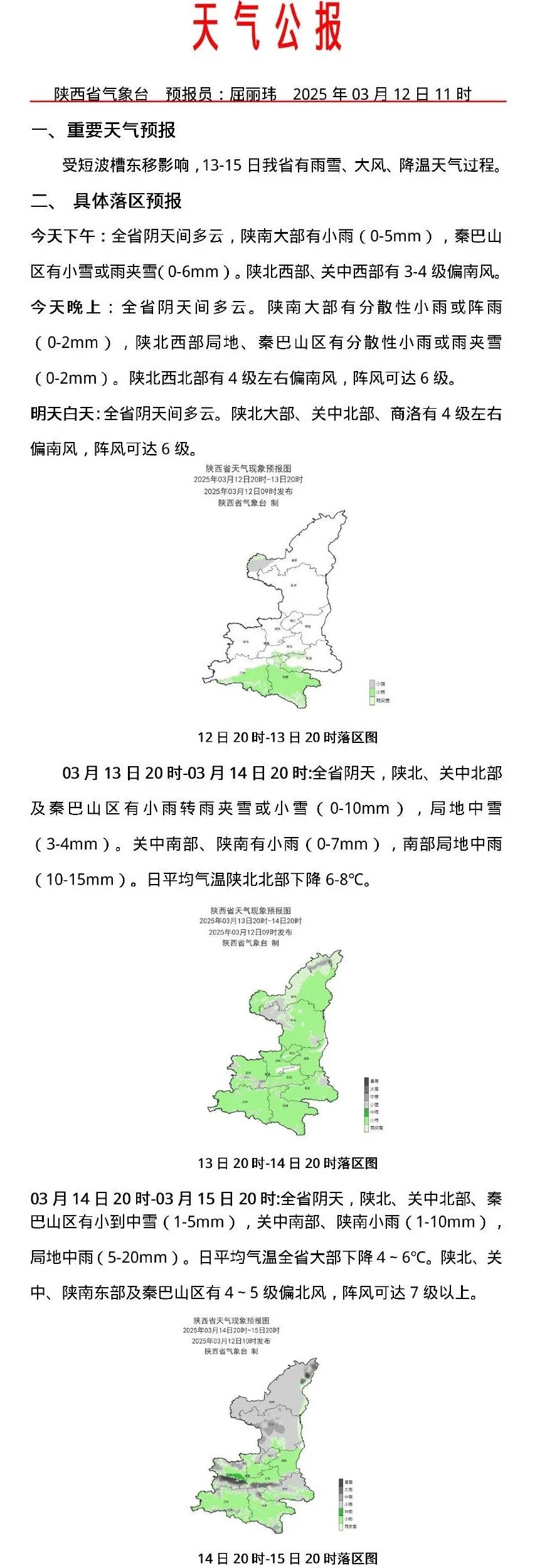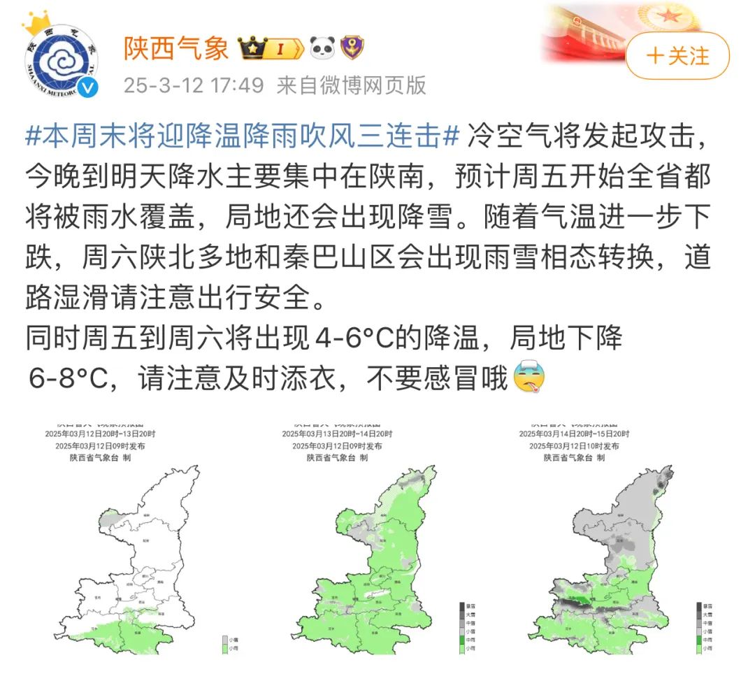 陕西有雨雪、大风、降温天气过程 ↓↓↓
