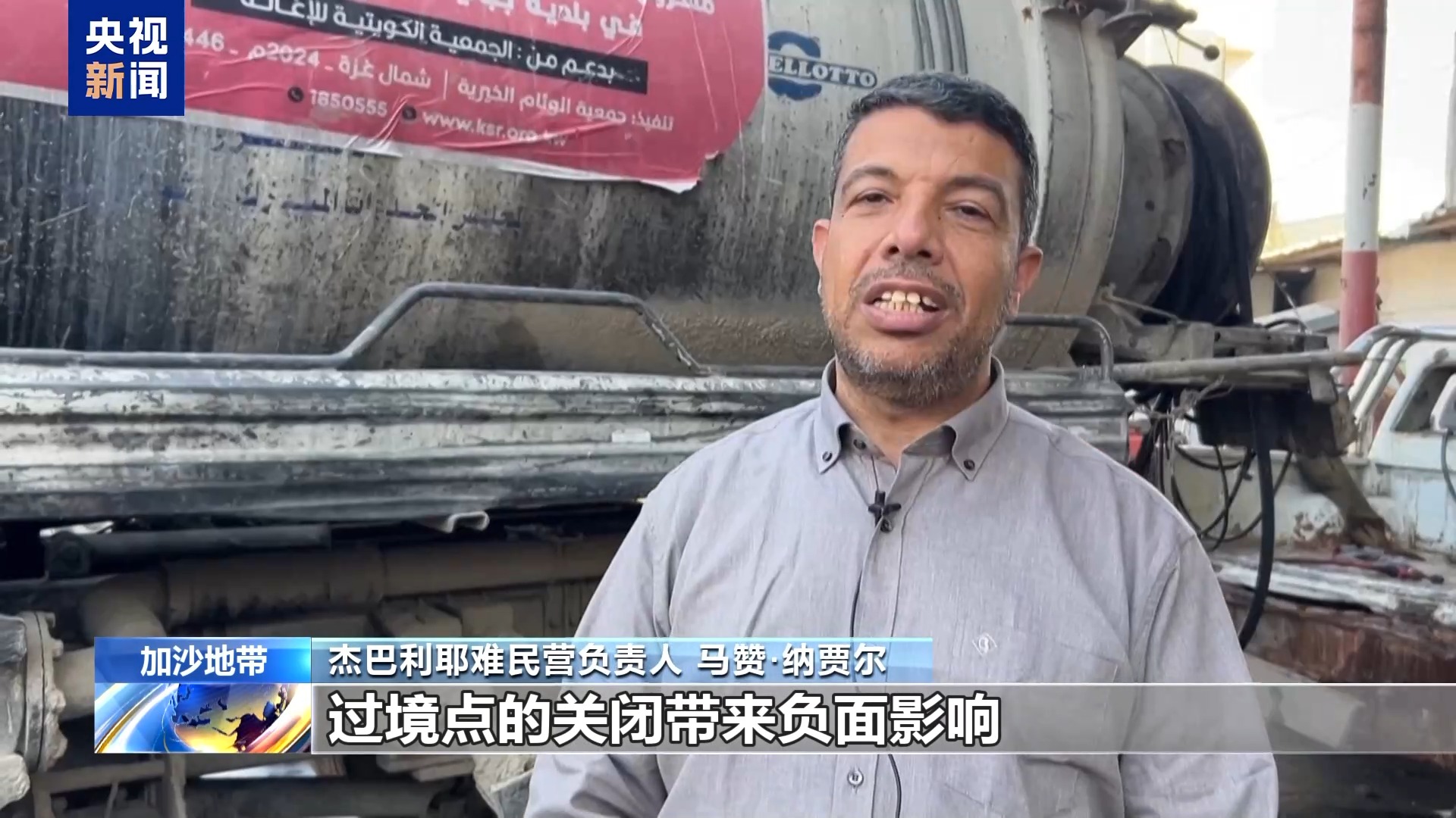 杰巴利耶难民营负责人 马赞·纳贾尔:过境点的关闭带来很多负面影响,在杰巴利耶无法抽排污水导致灾难性危机,大量污水流入营地和房屋。