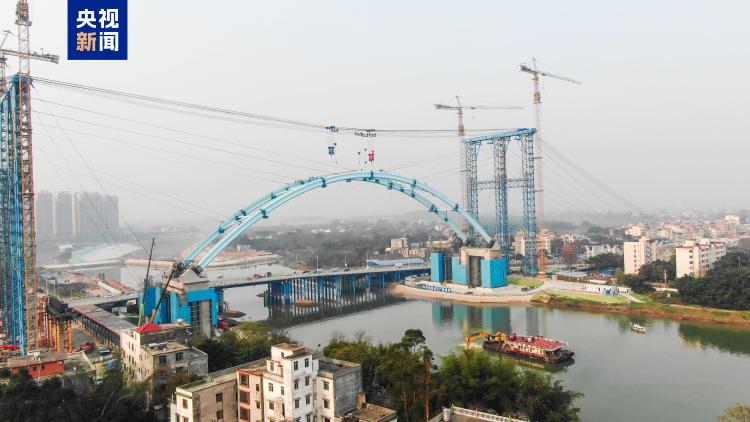 为满足平陆运河5000吨级船舶通航,金海湾大桥正在进行原位拆除改建。新建金海湾大桥为主跨191米的下承式钢管混凝土系杆拱桥,采用“缆索吊装+斜拉扣挂法”的施工工艺。当前,平陆运河全线桥梁建设正有条不紊推进中,多座桥梁正在加快进行主体结构施工,预计2025年底将完成19座桥梁的建设任务。