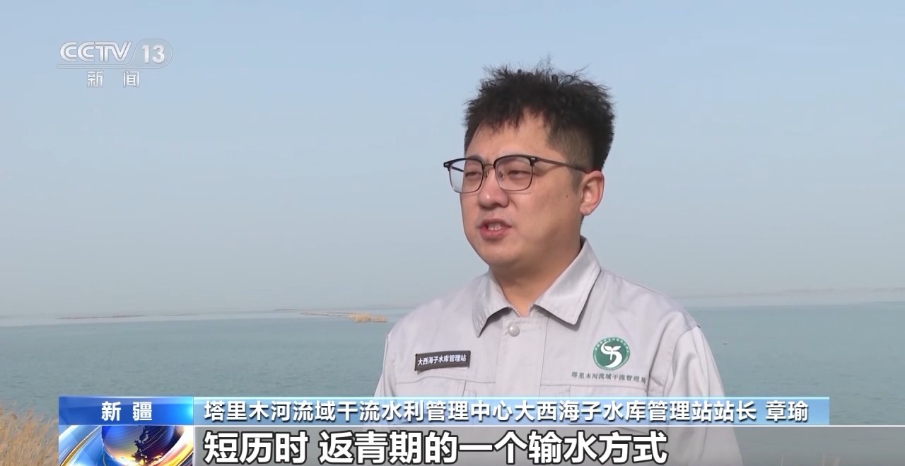 新疆塔里木河流域干流水利管理中心大西海子水库管理站站长 章瑜:我们采取了双河道、短历时、返青期的一个输水方式,在输水的同时实时监控沿线生态闸、节制闸,有效扩大它的一个受水面积。