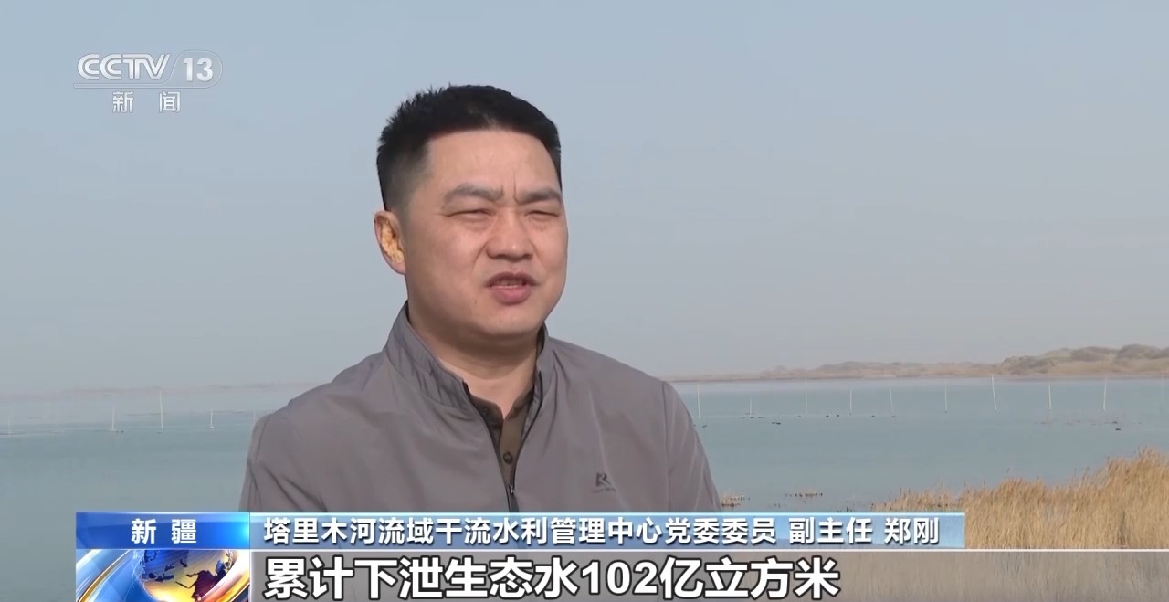 新疆塔里木河流域干流水利管理中心党委委员 副主任 郑刚:截至目前,大西海子水库累计下泄生态水102亿立方米,年均下泄4.08亿立方米,水头19次到达塔里木河尾闾台特玛湖。塔里木河下游绿色廊道得到了有效保护和巩固。