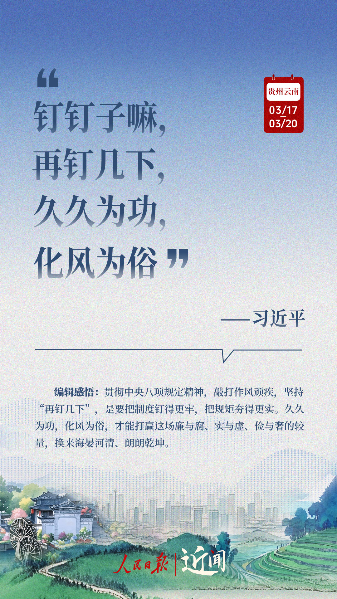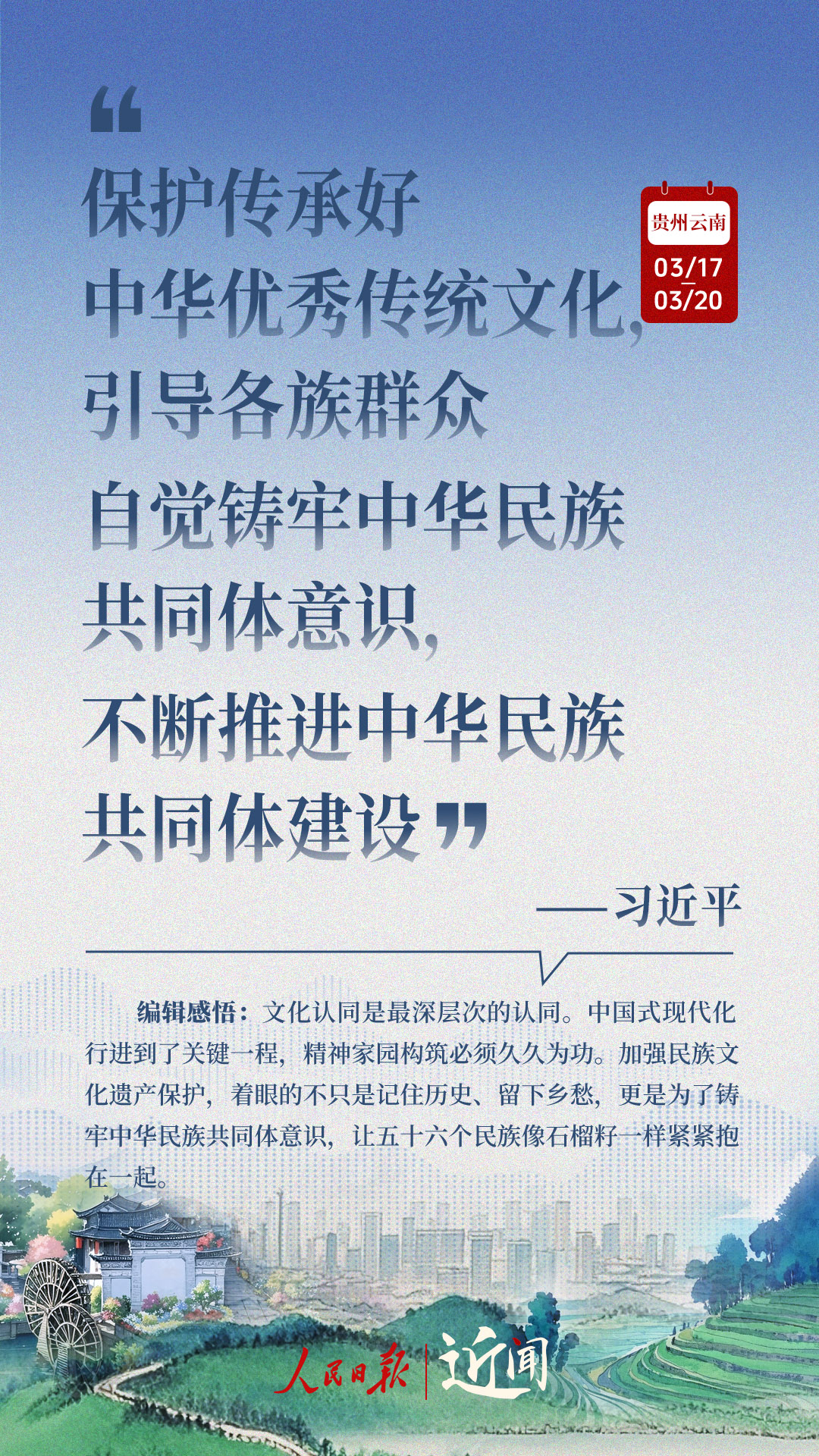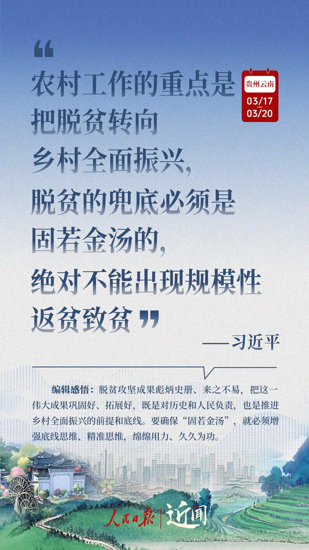 全国两会闭幕不到一周,习近平总书记即赴贵州和云南考察。细致察看,深入询问,一路调研,一路思考。从这十句话,感悟总书记对“国之大者”的深谋远虑,对高质量发展的擘画部署。策划:杜尚泽编辑:胡泽曦海报设计:李艳校检:吴玥
