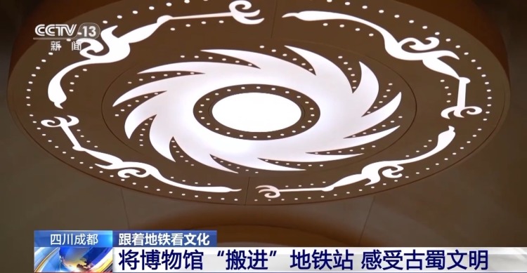 总台记者 蒋林:我们来到了成都地铁7号线的金沙博物馆站,它的设计理念融入了很多的古蜀文明和金沙文化符号。