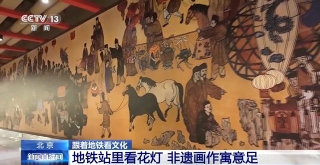 地铁站里看花灯 非遗画作寓意足