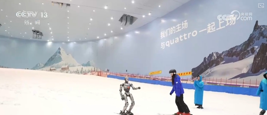 在启动仪式现场,人形机器人以“冰雪体验官”的身份和大家见面。随后,它来到雪道上,踩着双板滑行起来。稳定的动作吸引了全场的游客。当然,机器人和滑雪爱好者们相比,属于“滑雪小白”。