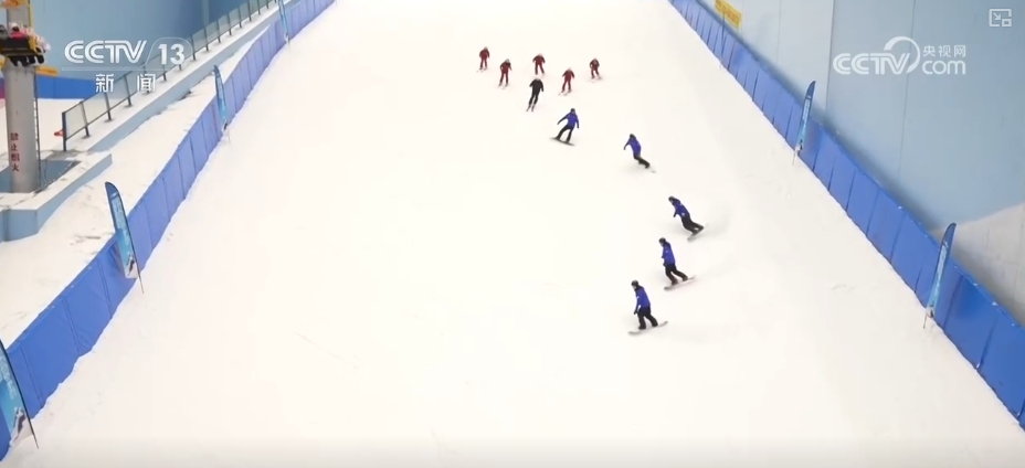在这家滑雪场内,随处可见身姿矫健的滑雪发烧友。为了丰富大家的室内滑雪体验,第二届湾区冰雪体育旅游文化季启动以来,当地打造了“冰雪+商圈”“冰雪+美食”等多种消费模式。