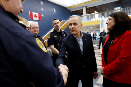 当地时间3月24日,加拿大总理卡尼访问该国纽芬兰甘德小镇。图源:英媒