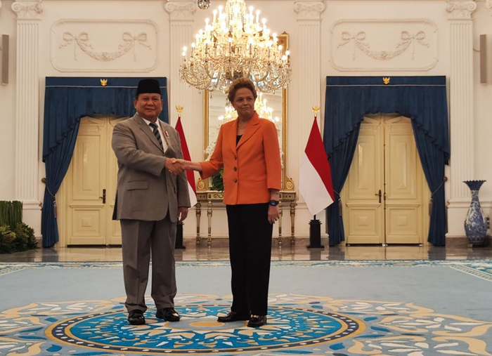 当地时间3月25日,印尼总统普拉博沃(左)在雅加达会见到访的新开发银行行长罗塞芙。图源:印尼国家通讯社安塔拉通讯社