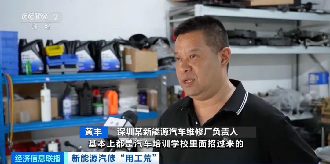 深圳某新能源汽车维修厂负责人 黄丰:招到有技术的人群很难,基本是汽车培训学校里招过来的,因为你要学过以后才行。
