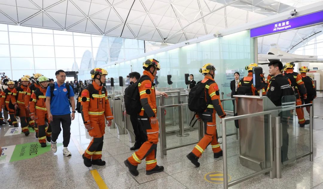 3月29日,救援队成员出发前往缅甸地震灾区。当日,香港特区政府派出一支51人救援队前往缅甸,协助地震灾区的搜救工作。新华社发