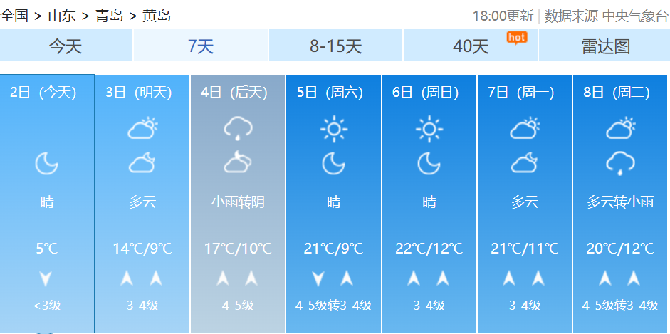 5日晴间多云,北风4~5级阵风7~8级转南风3~4级,最低气温8℃左右,最高气温16~20℃。