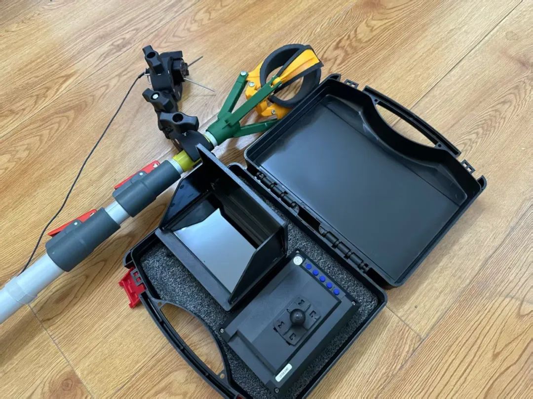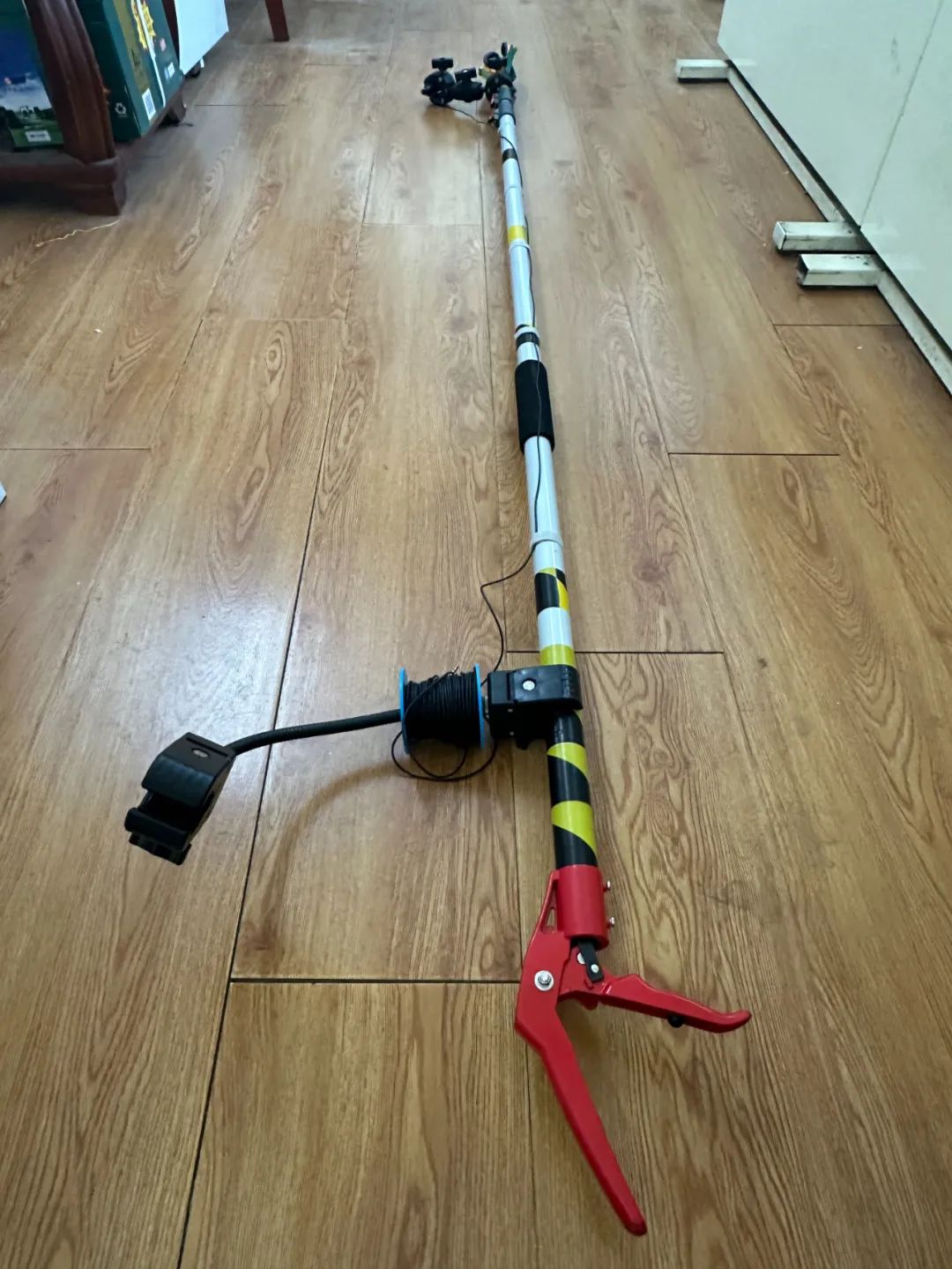 一天,吴宗政偶然翻看到一个钓鱼视频,水下探鱼器的实时监控功能让他豁然开朗:若将这种“电子眼”与伸缩打捞杆结合,不就能突破水下盲区难题?带着这个构想,吴宗政开启自主设计。他先后尝试3种不同规格的伸缩杆,最终选定3米可折叠双头夹和5米可伸缩三头夹杆,使夹具可以适配,并且创新引入万向软管连接器,使摄像头与抓取装置实现灵活联动。