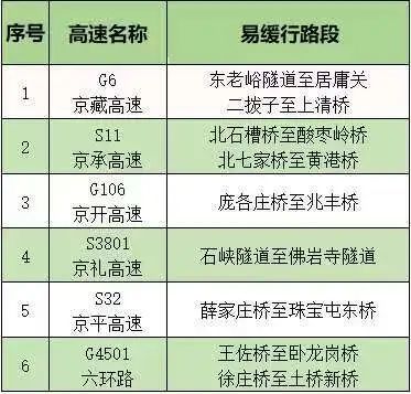 今天(4月6日)是清明假期最后一天。北京市交通运行监测调度中心预测,预计今天下午高速公路将迎来返程高峰,15-18时京藏、京承、京开、京礼、京平等高速进京方向以及六环路部分路段,可能会出现通行缓慢情况。