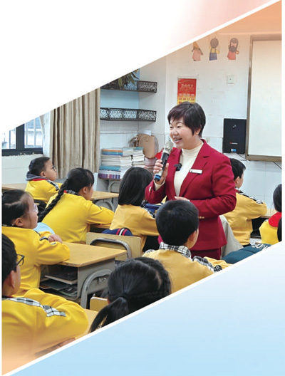 中央红军长征出发纪念馆讲解员钟敏在于都县城关小学进行宣讲。于都县融媒体中心供图