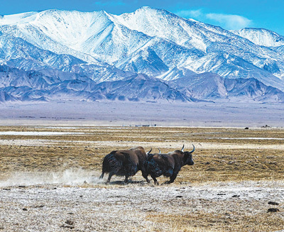 已是4月,位于青海省境内的三江源国家公园长江源园区可可西里保护区依旧冰天雪地。