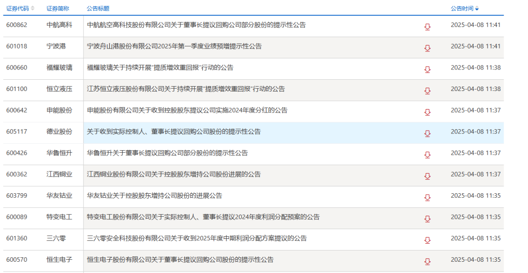 上交所和深交所官网显示,4月8日午间收盘后,又有一批公司发布回购、增持公告,包括中航高科、德业股份、恒生电子、牧原股份、徐工机械、深天马A、天虹股份等。