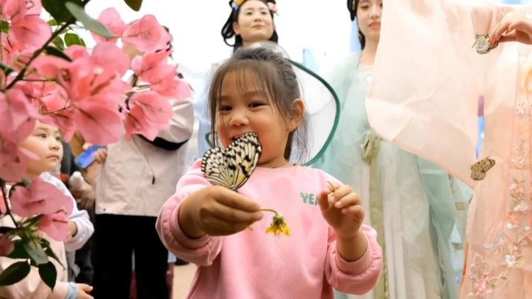 山东滨州惠民县一处田园生态旅游区举办“蝴蝶花海节”,成千上万只色彩斑斓的蝴蝶在温室内翩跹起舞,与盛开的鲜花相映成趣,吸引众多游客前来观赏。