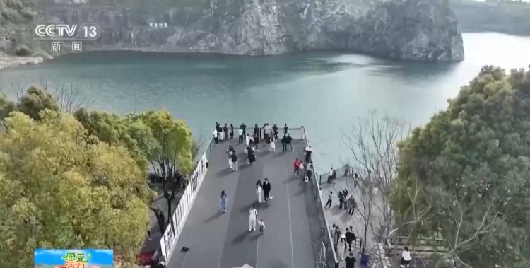 三年前,一个“90后”创业团队来到这里,在当地政府支持下,创业团队以天然形成的湛蓝色爱心湖为核心,保留了矿坑裸露的崖壁等原始风貌,将矿区原有的房屋改造成咖啡馆,形成了一个将工业废墟感和秀丽自然风光完美融合的景区。