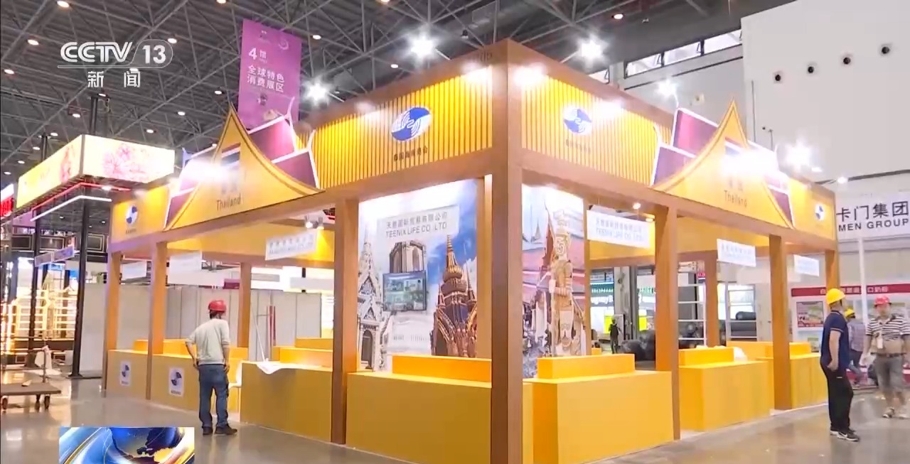 第五届消博会展馆设计搭建负责人 唐文钢:在工厂里面预制,现场负责组装就好了,这样效率更高一些。像我们这个馆5日开始进场,9日收尾,明天开始布置展品。