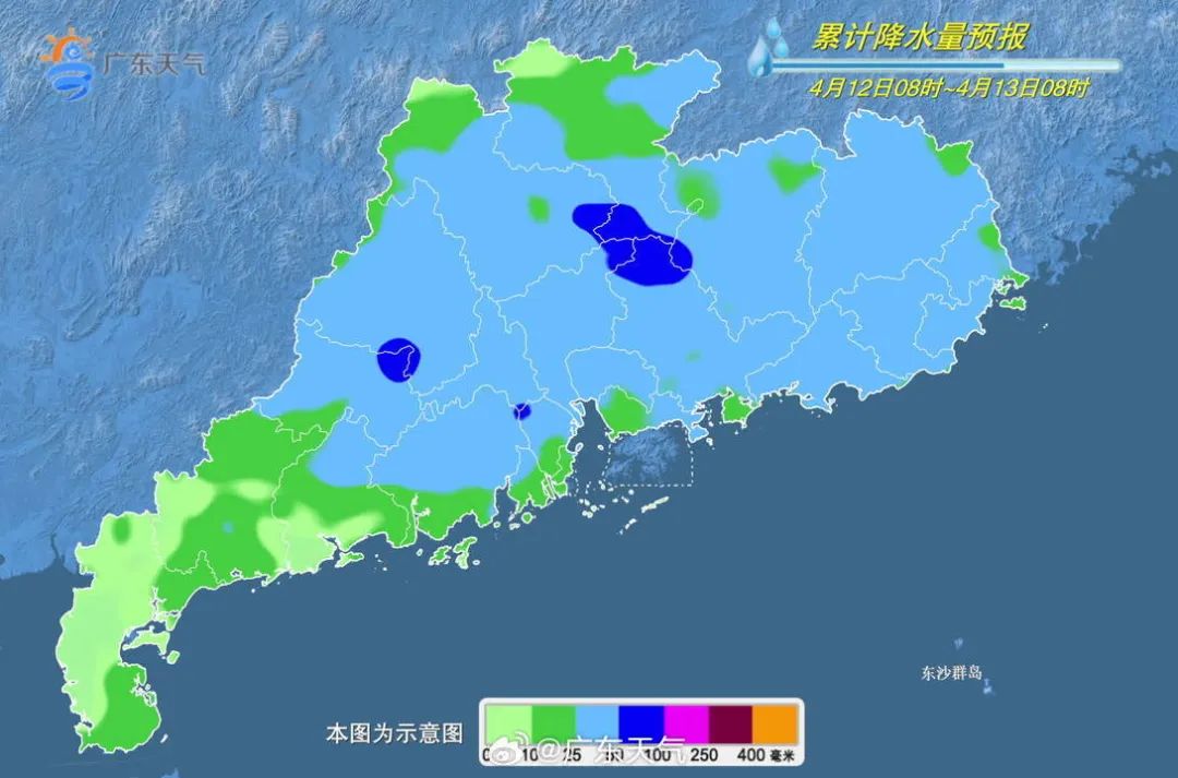 据@广东天气预报,12日,广东大部有8~10级局地12级的雷雨大风,部分市县有短时强降水、局地冰雹等强对流天气,中北部市县阴天,有大雨到暴雨局地大暴雨,其余市县多云到阴天,有中到大雨局地暴雨。最低气温:粤北市县10~14℃,粤西沿海市县18~22℃,其余市县14~18℃。