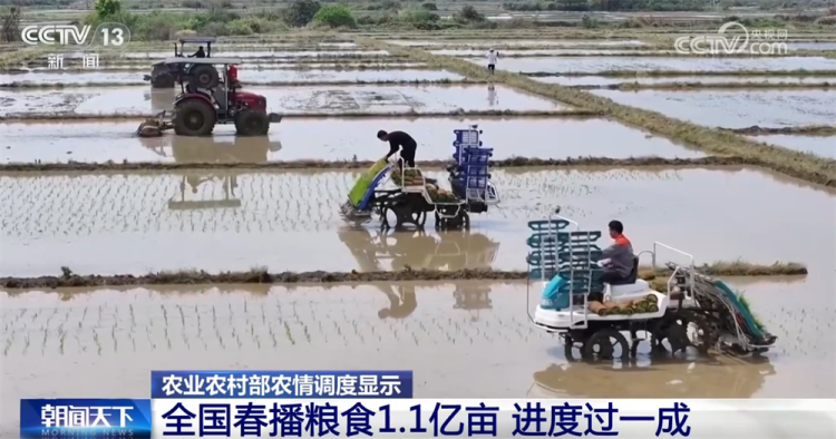 央视网消息: 目前,春播正由南向北有序推进。农业农村部最新农情调度显示,目前,全国春播粮食1.1亿亩,进度过一成,与上年基本持平。其中,早稻栽插过四成半,春播马铃薯过半,春小麦过三成,春玉米播种近一成。