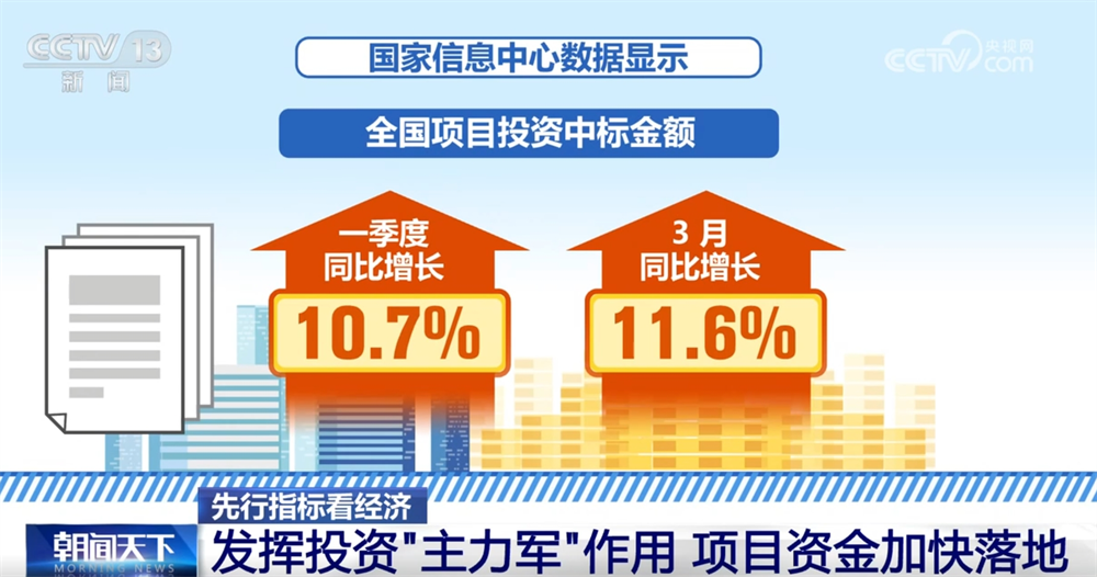 央视网消息: 今年以来,随着各项宏观政策继续加力显效,我国经济呈现多点发力、向“新”而行的良好态势。国家信息中心最新发布的一系列先行指标显示,一季度我国经济开局稳、成色足。首先,我们来看投资。今年以来,投资引擎动能增强,重大项目资金保障有力,呈现“政策靠前发力、项目加快推进”的特征。