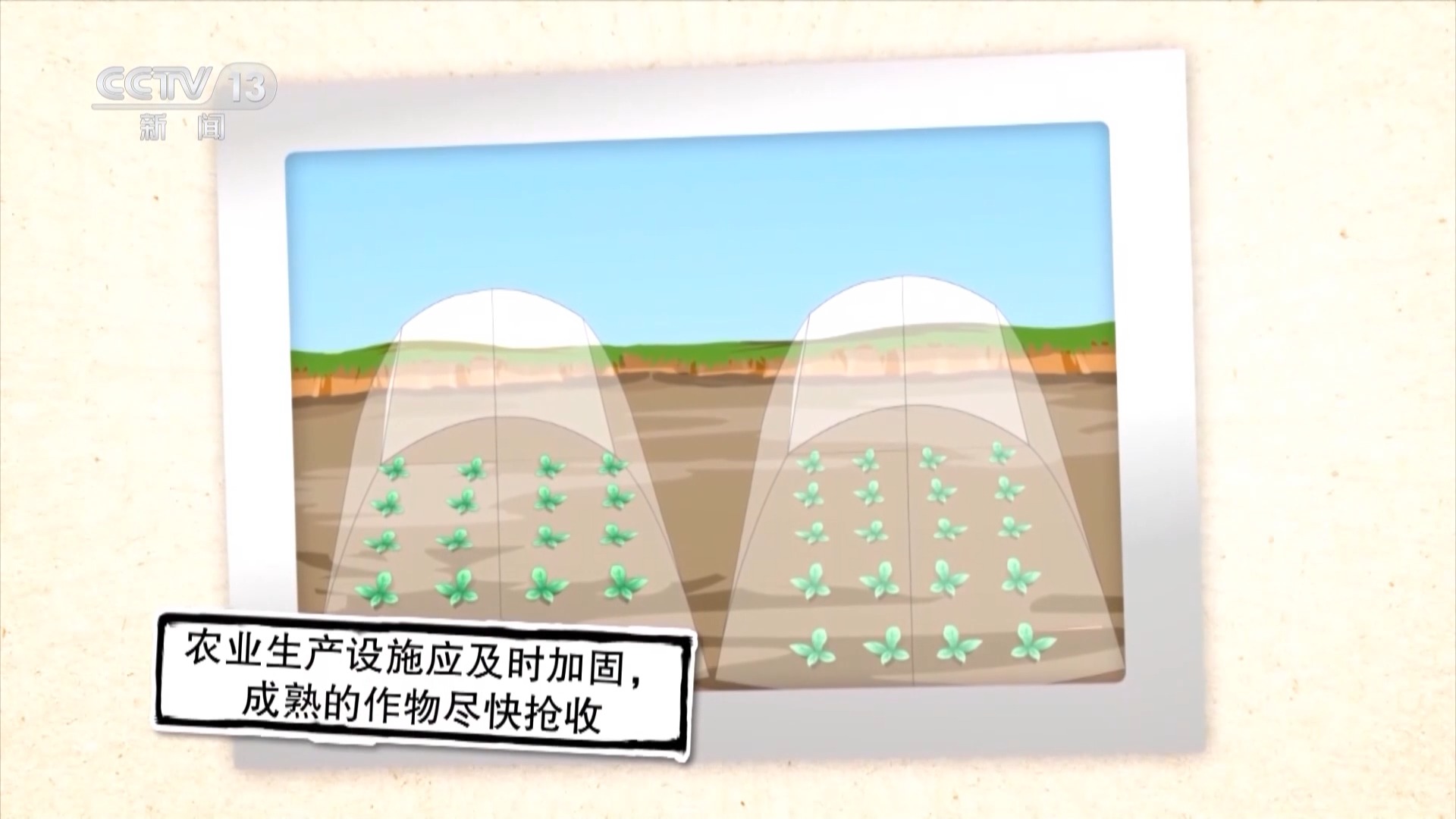 农业生产设施应及时加固,成熟的作物尽快抢收。