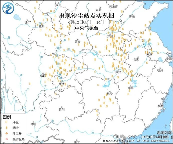 据@中央气象台:14时,沙尘已经影响到江南地区。