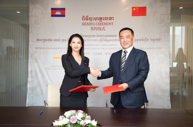 4月11日,中国闪亮影业与柬埔寨索玛集团合拍故事片《吴哥密码》(暂定名)项目谅解备忘录签约仪式在柬埔寨首都金边举行。