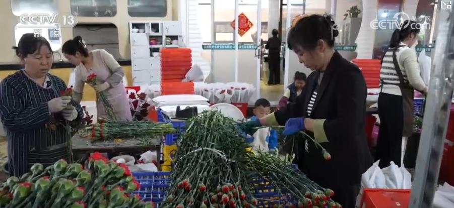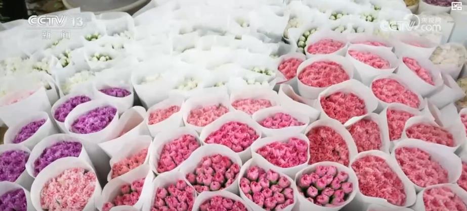 在昆明一家花卉贸易公司,记者看到,工人们正加班加点对刚刚集中采购回来的康乃馨进行二次分级包装。