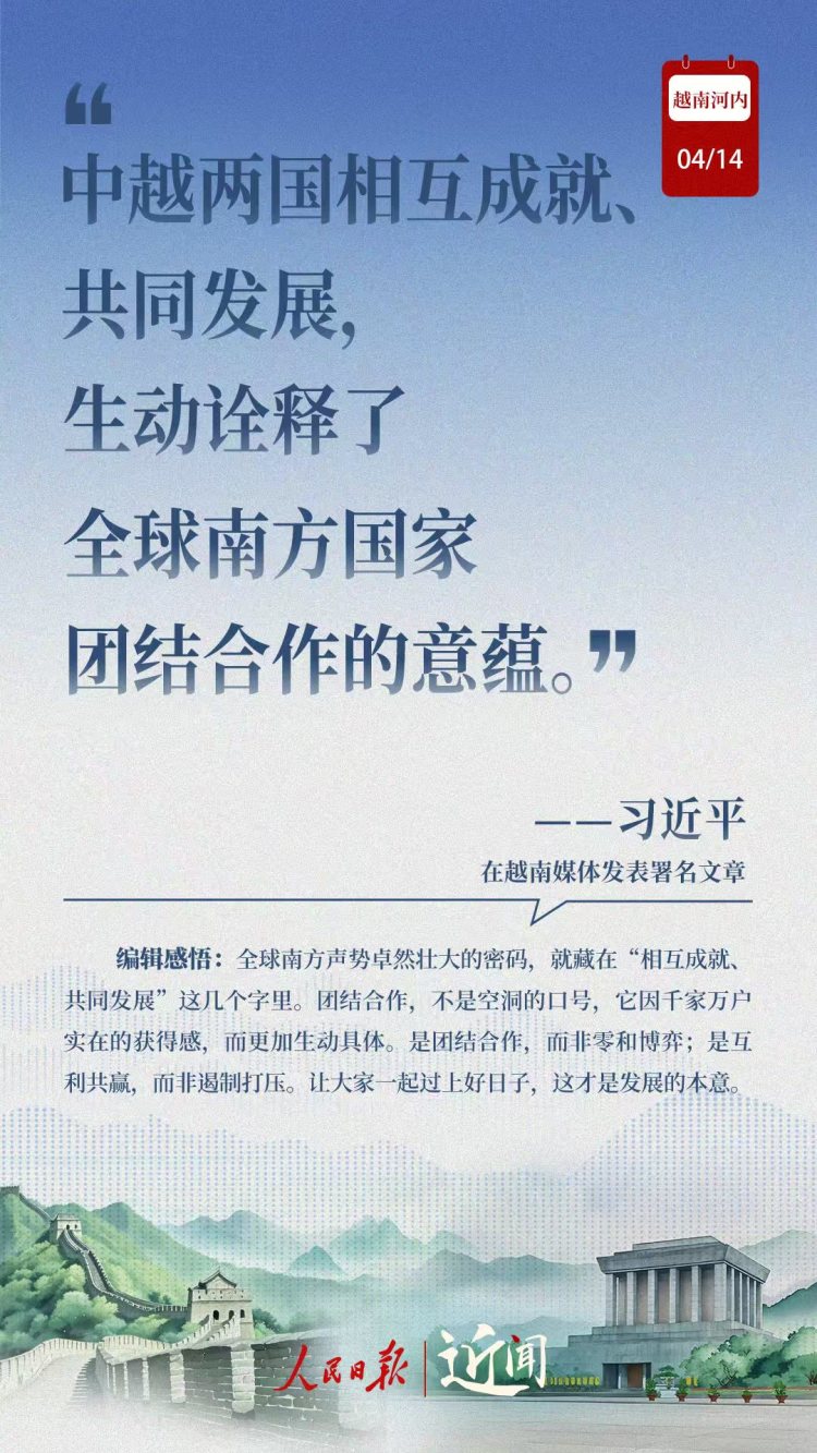 “小船孤篷经不起惊涛骇浪,同舟共济方能行稳致远”“中越关系根基在人民、血脉在人民、力量在人民”……透过这些话,一览此次越南之行。