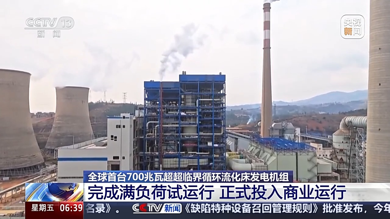 记者昨天(17日)从东方电气集团获悉,全球首台700兆瓦超超临界循环流化床发电机组,顺利完成168小时满负荷试运行,正式投入商业运行。