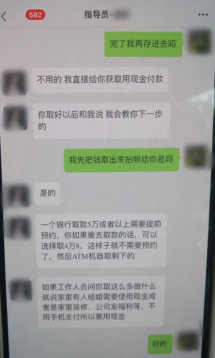 第二步,以账户限额、操作失误需解冻等理由,诱导受害者去银行提取现金。