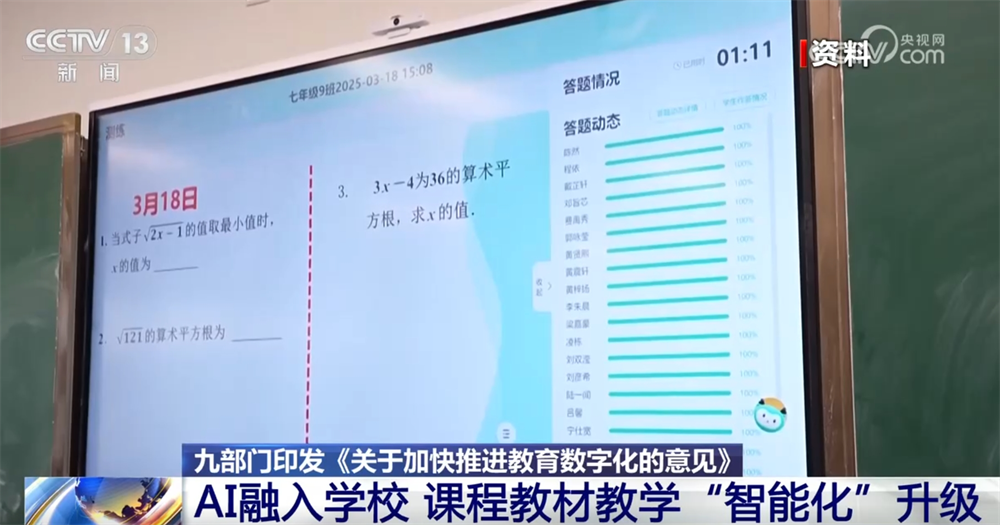 央视网消息: 教育部等九部门日前印发《关于加快推进教育数字化的意见》。该《意见》与大中小学师生紧密相关,学校的课程、使用的教材和老师的教学都正在向“数字化”转型、向“智能化”升级。