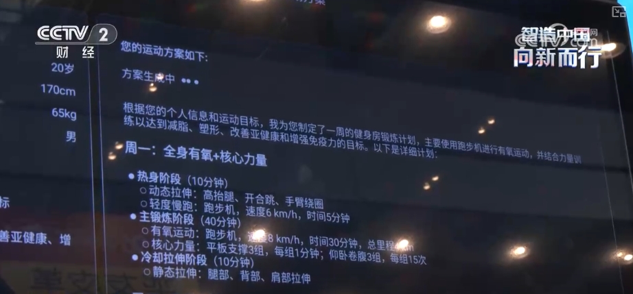 今后督促你锻炼的,除了你的健身教练,还可能是一台跑步机。这款全新推出的AI智能跑步机,只要输入你的身体数据,就可以大模型智能生成一个属于你的健身方案。跑步的时候,还可以实时监测你的心率、呼吸等健康数据,陪伴你的运动全过程。