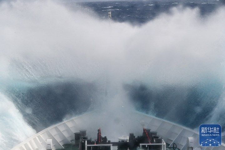 ↑3月17日,在中国黄岩岛附近海域,高栏舰劈波斩浪开展常态化巡逻管控任务。