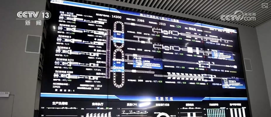 在这家空调生产企业数字中心里,大屏幕上正展示着海外市场的订单情况。工作人员只需选择生产的订单,系统算法就会根据客户订单的定制信息,结合生产线运行情况等进行排产,并实时展现排产信息。