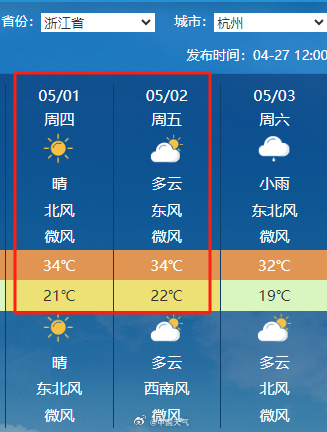 南方多地首个高温日或提前登场。城市中南京、武汉、杭州、南昌都有机会挑战今年的首个高温。常年来看,长江中下游一带的首个高温日通常出现在6月中旬或下旬(杭州6月14日、武汉6月12日、南昌6月26日),如果上述城市出现高温的话,则明显偏早于常年,目前预报时效较远,具体数值后期可能还有调整。