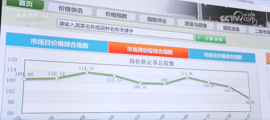 离开地头,记者走进全国重点大型农批市场——寿光农产品物流园,这里每天发布的中国蔬菜价格指数,是全国的蔬菜价格的“晴雨表”。从价格指数上可以看出,近期,受季节性因素影响,蔬菜价格指数有所下滑。