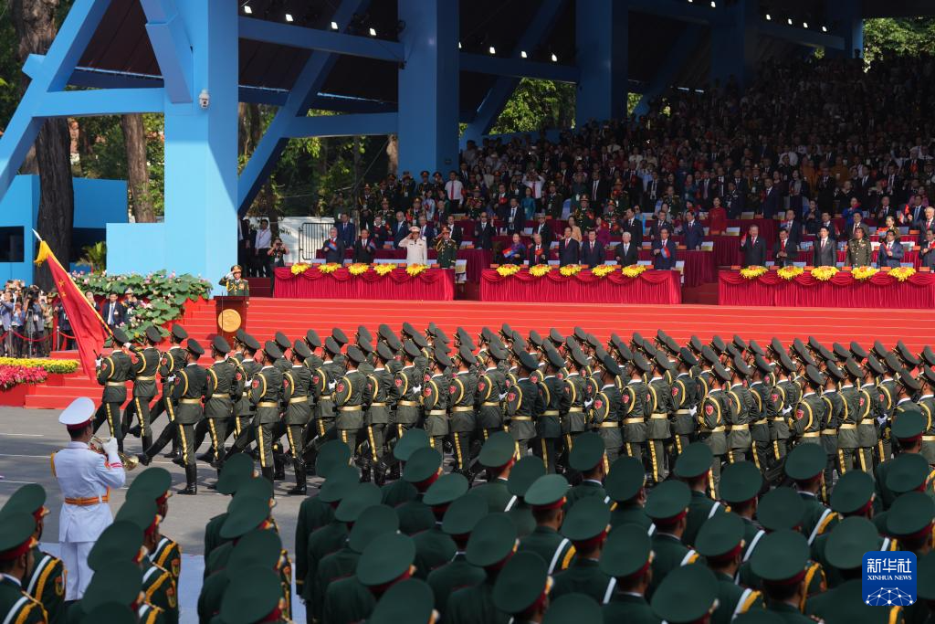 庆典活动于当地时间6时许正式开始。越南陆军、海军、空军等军种官兵、警察和外军方队参加了阅兵式。仪式上,中方仪仗队员们精神抖擞、步伐整齐,展现了当代中国军人的飒爽英姿,受到当地民众、华侨华人、中资机构与企业人员的热烈欢迎。