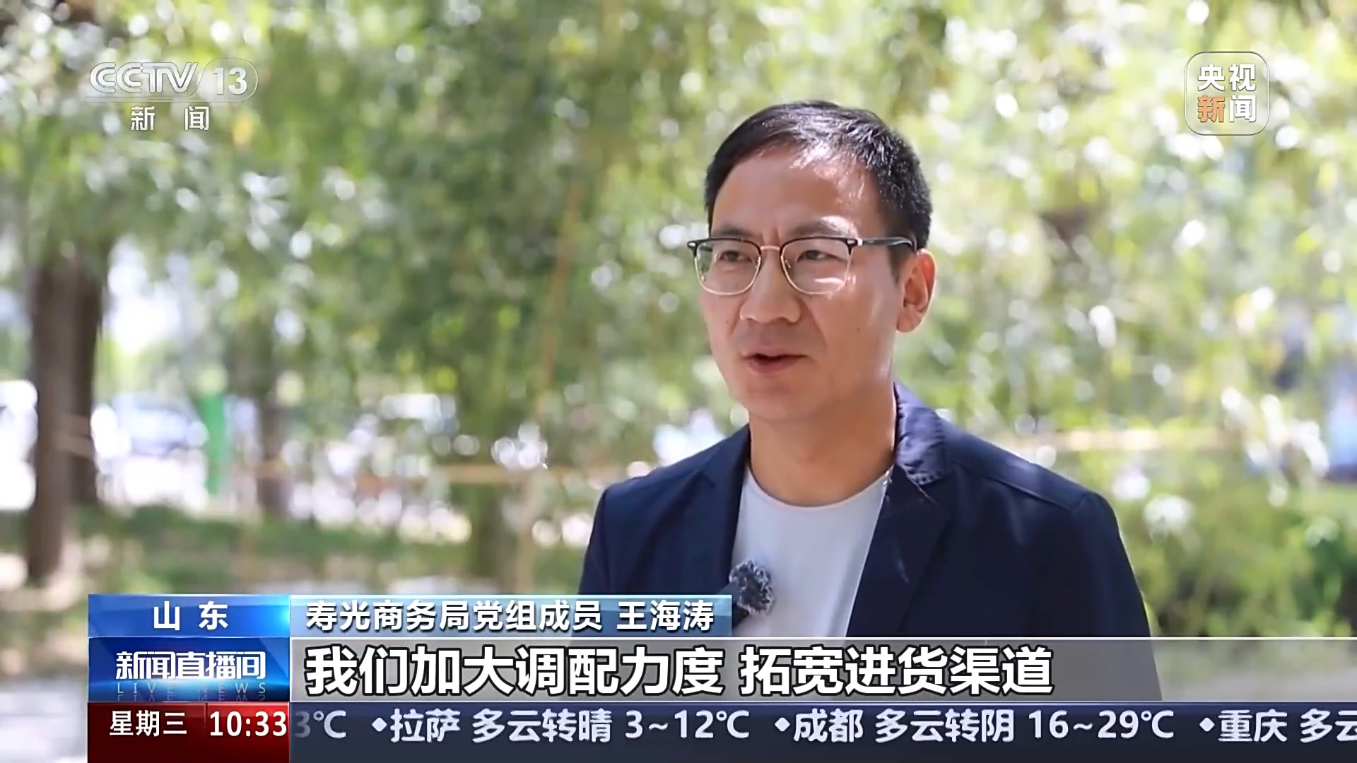 寿光商务局党组成员 王海涛:加大调配力度,拓宽进货渠道,增加运输频次,蔬菜供应充足。同时我们严格把控品质,加大蔬菜质量检测和溯源的力度,力求让新鲜、安全的蔬菜及时送达各大市场,全力保障五一期间“菜篮子”安全。