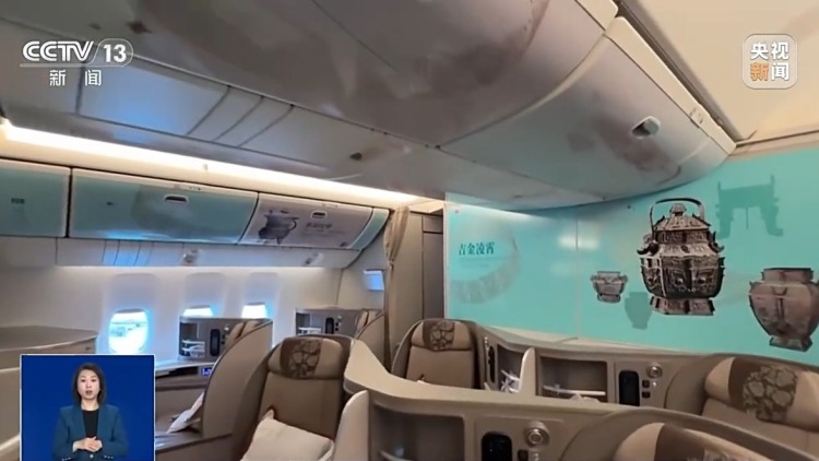 文旅“牵手”交通的创意还将博物馆带到了“天上”。上海博物馆和中国东方航空推出宽体彩绘飞机“上博号”,为假日出行的旅客增添了“空中博物馆”的新体验。座椅头垫等位置呈现上博馆藏青铜器的图案,旅客仿佛置身于空中的中国古代青铜器艺术特展中。