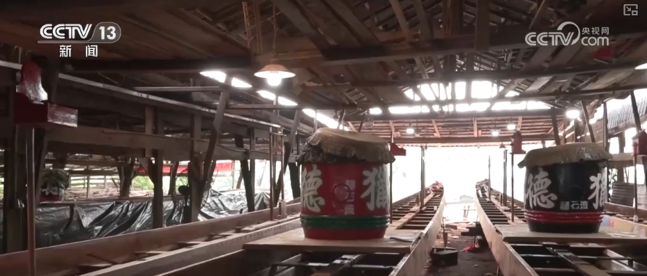 上漖龙舟制作技艺非物质文化遗产代表性传承人黄剑挺介绍,重头戏是人们村的龙舟,这里虽然是龙舟制作之乡,但上一艘龙舟是35年前制作的,这次对于他们来说是非常大的喜事。另外,还需制作猎德村的3艘龙舟,他们龙舟氛围非常浓厚,所以一次订了3艘龙舟。