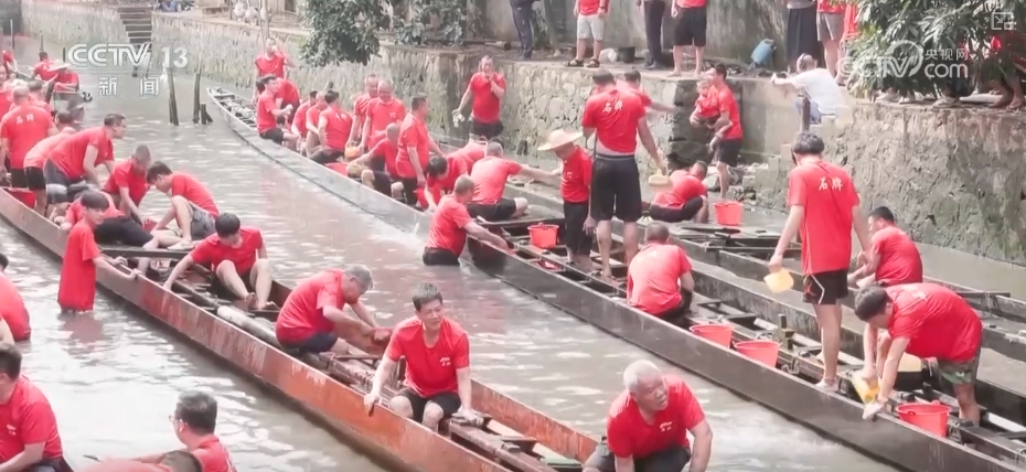 村民们说,由于石牌村内缺乏合适的河涌,所以每年都在双岗村内“起龙”和“藏龙”。这些采用坤甸木打造的龙船,因其良好的耐腐性能长年“藏龙”水下。接下来,村民们将为龙船除垢上油,安装龙头、龙尾,并装饰罗伞等传统饰物,迎接龙舟季的到来。
